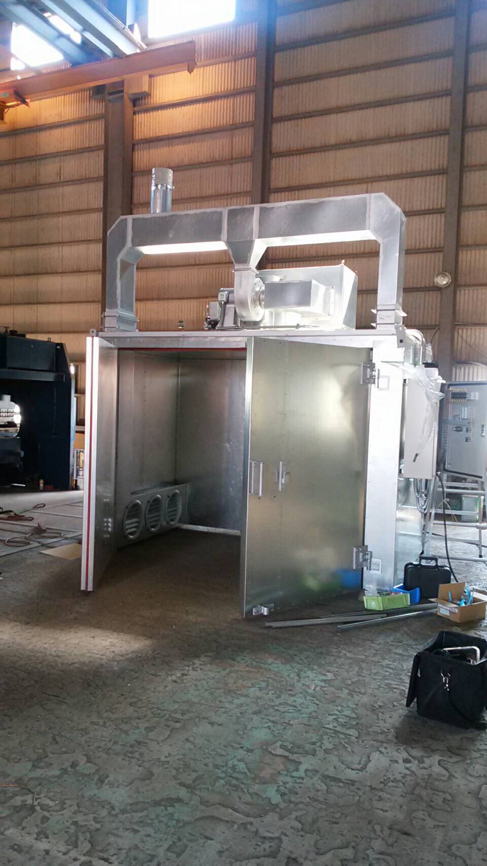 パーツ塗装乾燥用にご採用いただきました。 中古のトラックコンテナを利用した簡易式で、炉内温度の均一化を図るために温風吐出速度を 上げることで攪拌を促進した設計となっています。 また工場内に設置スペースがないことから屋外仕様にて納入させていただきました。 導入から9年間、当社からの緊急修理出動は一度も発せてしておらず、安心してご使用いただいております。